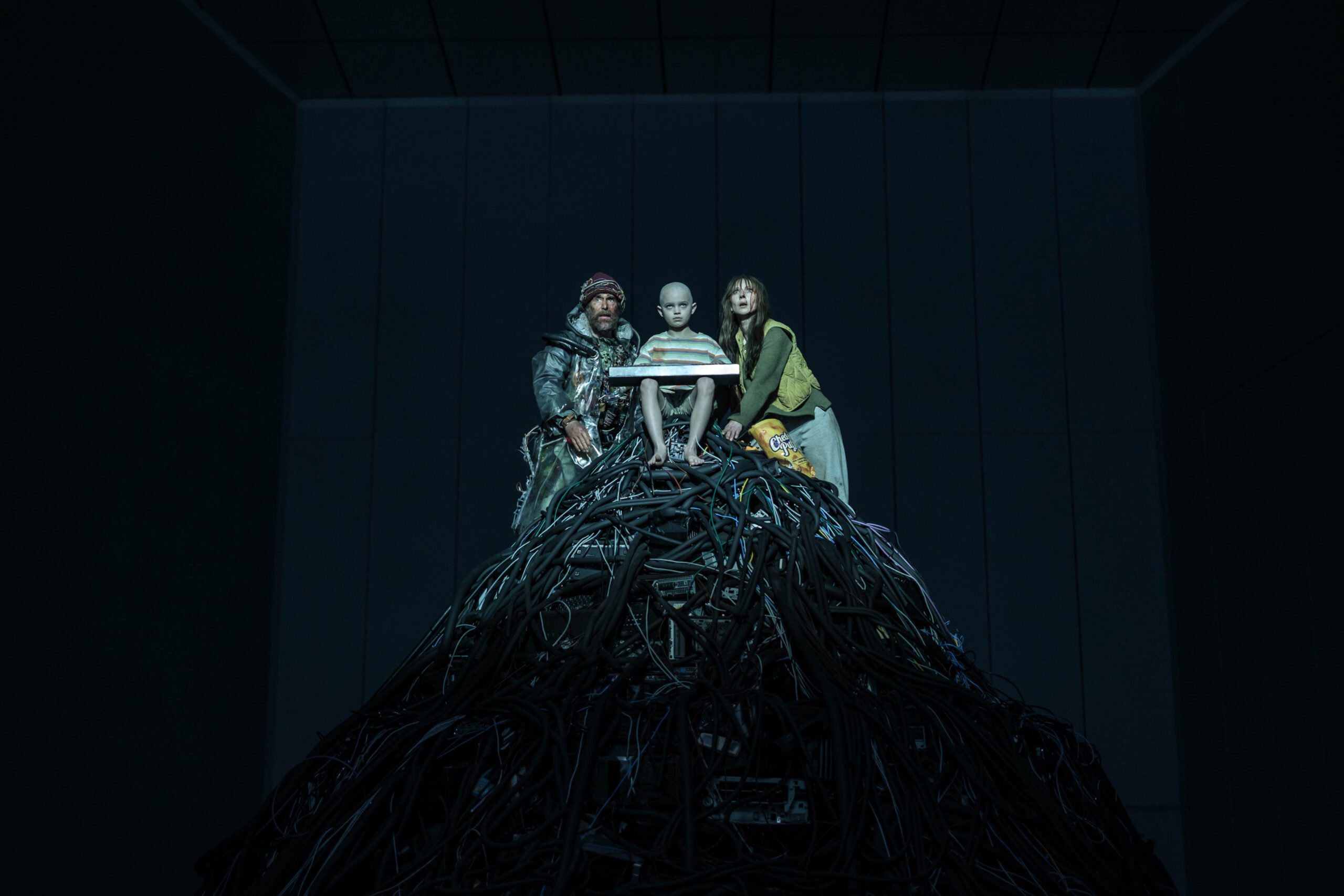 Por ultimo tenemos a Juno Temple, Como es habitual en ella, Temple construye un personaje excéntrico y fascinante. Su papel como experta en la «oscuridad» de la red es clave, aportando una energía magnética y un punto de vista cínico que choca deliciosamente con el optimismo de otros personajes. En cambio, Asim Chaudhry, es la gran sorpresa del film. Su interpretación aporta una ternura inesperada. Chaudhry personifica a esa parte de la humanidad que la IA considera «prescindible», y su lucha por demostrar su valor le da a la película sus momentos más emotivos.