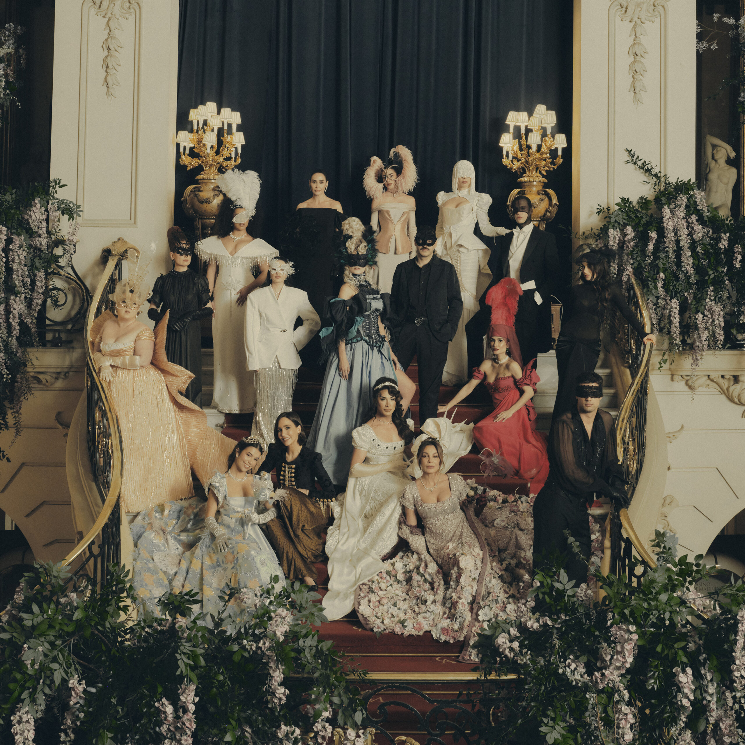 El baile de máscaras se inauguró con la entrada de nueve debutantes que lucieron looks de alta costura made in Spain inspirados en el universo de Los Bridgerton, creados en exclusiva para la ocasión por los reconocidos diseñadores españoles Ana Locking, Carmen Farala, Dominnico, Luis de Javier, María Escoté, Palomo Spain, Paola Barreto, Rocío Osorno y Vicky Martín Berrocal para Lala Chus, Mar Flores, Alba Carrillo, Samantha Hudson, Iera González, Manu Moreno, Virtual Diva, Elena Gortari y Lola Lolita, respectivamente.